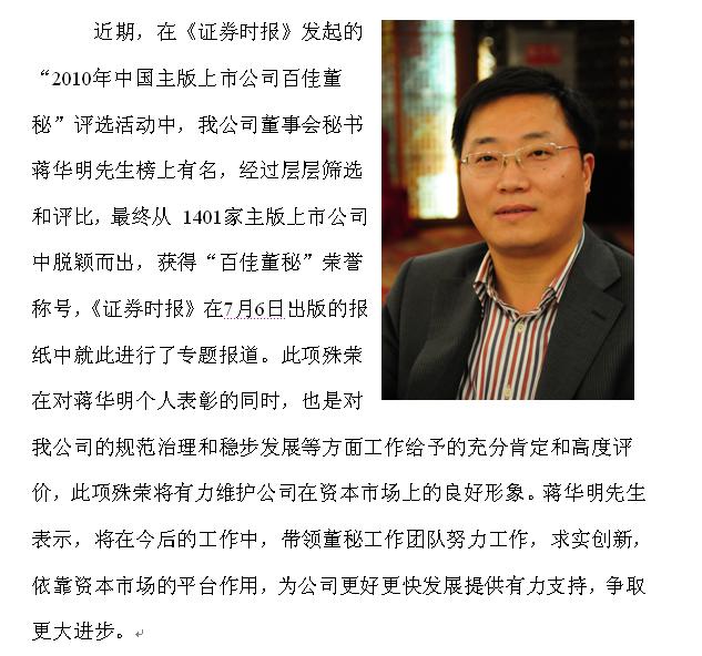 我公司董事會(huì)秘書蔣華明先生獲得“百佳董秘”榮譽(yù)稱號