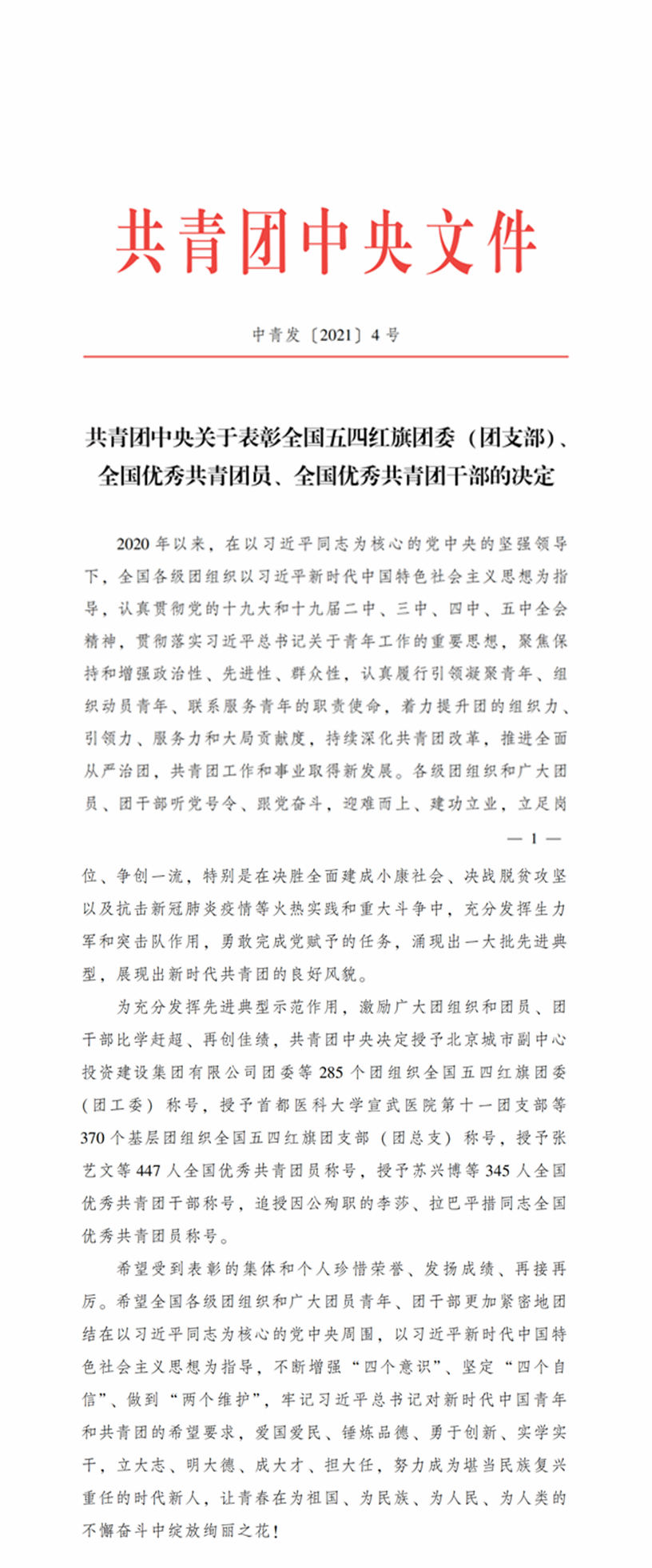 共青團(tuán)中央本次授予285個(gè)團(tuán)組織全國(guó)五四紅旗團(tuán)委稱(chēng)號(hào),授予370個(gè)團(tuán)組織全國(guó)五四紅旗團(tuán)支部稱(chēng)號(hào),授予447人全國(guó)優(yōu)秀共青團(tuán)員稱(chēng)號(hào),授予345人全國(guó)優(yōu)秀共青團(tuán)干部稱(chēng)號(hào),并追授因公殉職的李莎、拉巴平措同志為全國(guó)優(yōu)秀共青團(tuán)員稱(chēng)號(hào)。