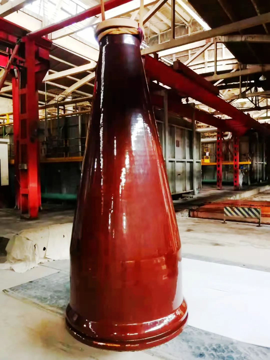 本次研制的2000kV變壓器電容套管將應(yīng)用于目前世界上電壓等級(jí)最高的試驗(yàn)變壓器,對(duì)1100kV特高壓電氣設(shè)備產(chǎn)品進(jìn)行各項(xiàng)嚴(yán)格的電氣性能試驗(yàn)。這種試驗(yàn)方法屬于國(guó)內(nèi)首次,相比常規(guī)產(chǎn)品,試驗(yàn)要求及質(zhì)量控制更加苛刻。同時(shí),該產(chǎn)品為超大尺寸、薄壁、錐度大、易變形的炮彈式結(jié)構(gòu),僅毛坯重量就接近8噸,整個(gè)制造過(guò)程采用濕法產(chǎn)線生產(chǎn),因突破了很多設(shè)備的極限,成型極其困難。在毛坯擠制、轉(zhuǎn)運(yùn)、陰干、修坯、干燥、上釉、燒成、切割研磨各工序,均存在不同程度困難與挑戰(zhàn)。