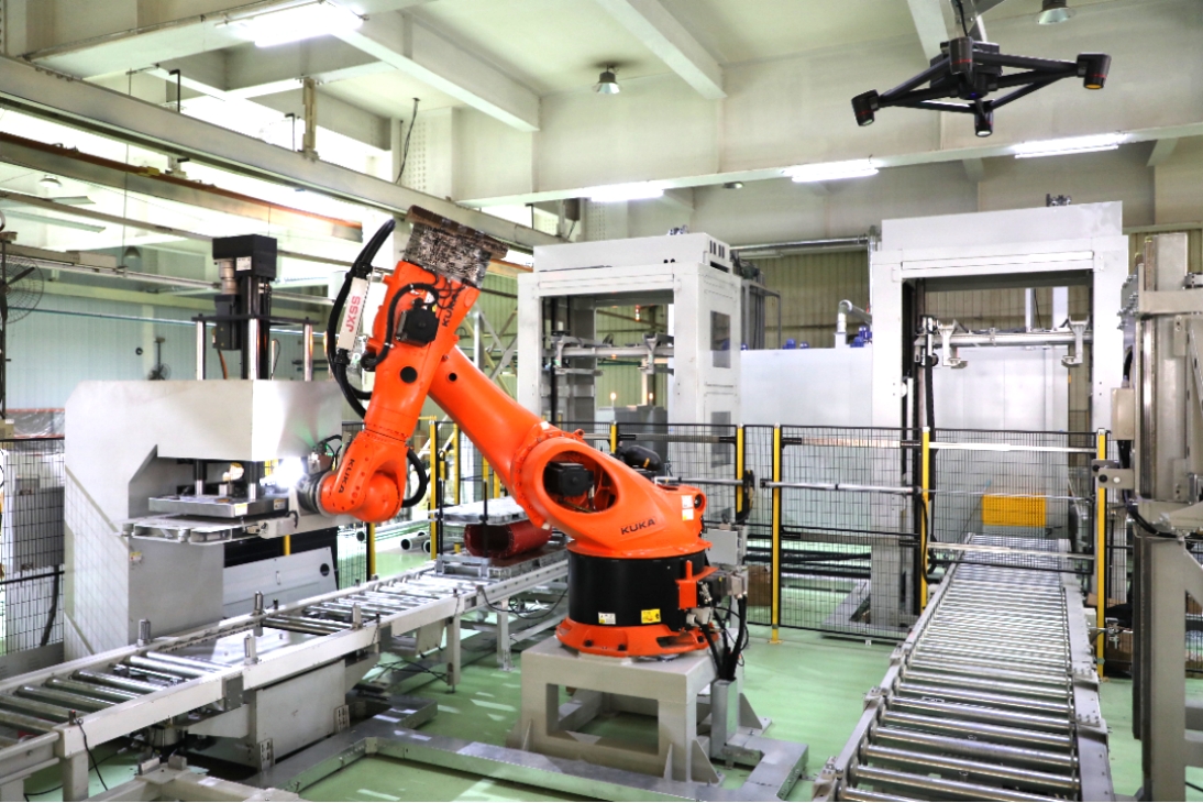寶光股份充分應用5S管理和定置管理等精益理念,通過對稱雙回字形布局實現生產現場面積最大化利用,7臺高檔數控設備和2臺工業機器人全部實現在線運行監測和故障診斷,設備狀態信息實時顯示和處理,有效保證人機協同作業的安全。產線的投入使用在降本的同時顯著提高零件生產質量、效率和智能制造水平,目前,已累計加工導電桿零件8萬余件,提高生產效率30%以上,零件生產周期縮短50%以上。