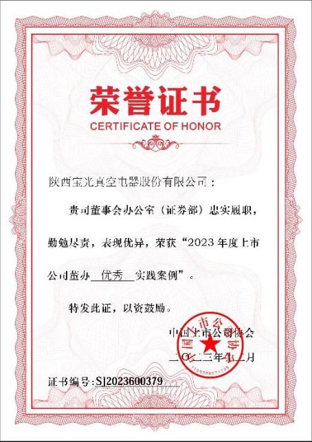 近日,中國(guó)上市公司協(xié)會(huì)公布“2023上市公司董辦最佳實(shí)踐”結(jié)果,寶光股份入選中國(guó)上市公司協(xié)會(huì)“2023年度上市公司董辦優(yōu)秀實(shí)踐案例”,為陜西八家上市公司載譽(yù)單位之一。