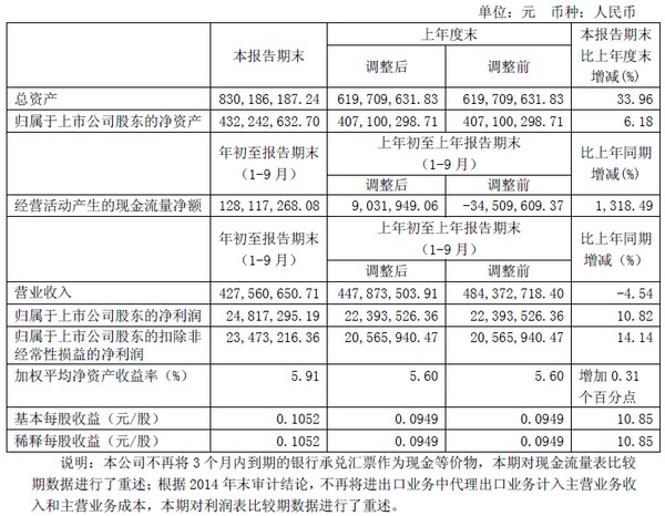 寶光股份2015年3季度主要財務指標